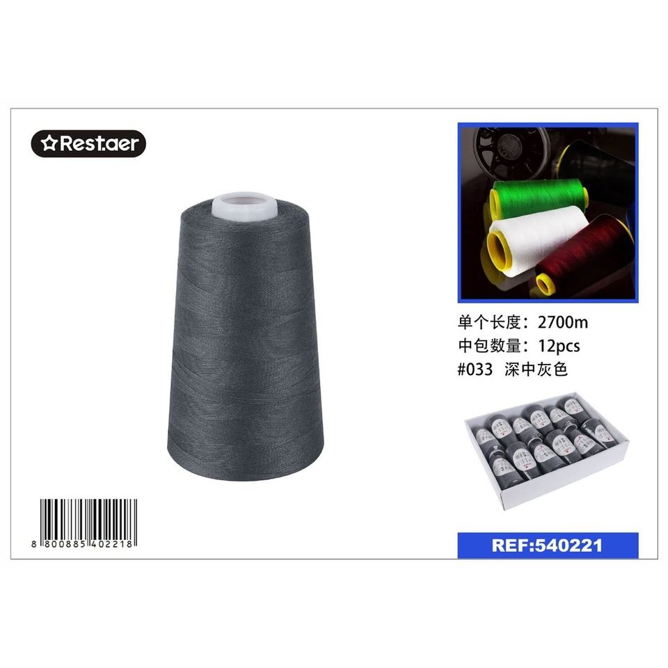 ด้ายเย็บผ้าสีเทาเข้มยาว2700เมตรสำหรับงานฝีมือ