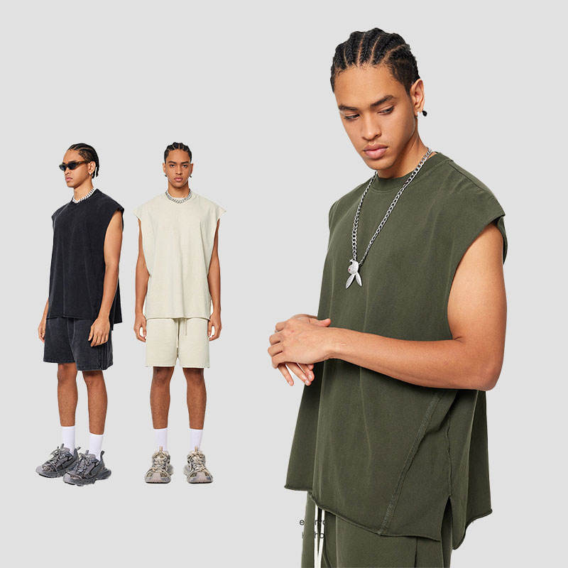 เสื้อกล้ามสำหรับผู้ชายเสื้อออกกำลังกายแขนกุดผ้าฝ้าย100% ออกแบบโลโก้ได้ตามต้องการ270gsm