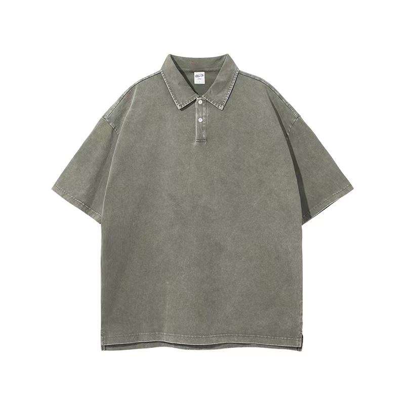 เสื้อโปโลผู้ชายคุณภาพสูง 275 กรัม ผ้าฝ้าย 100% ย้อมสีแบบ Garment Dye ทรงโอเวอร์ไซส์ เนื้อผ้าหนา สไตล์ลำลอง