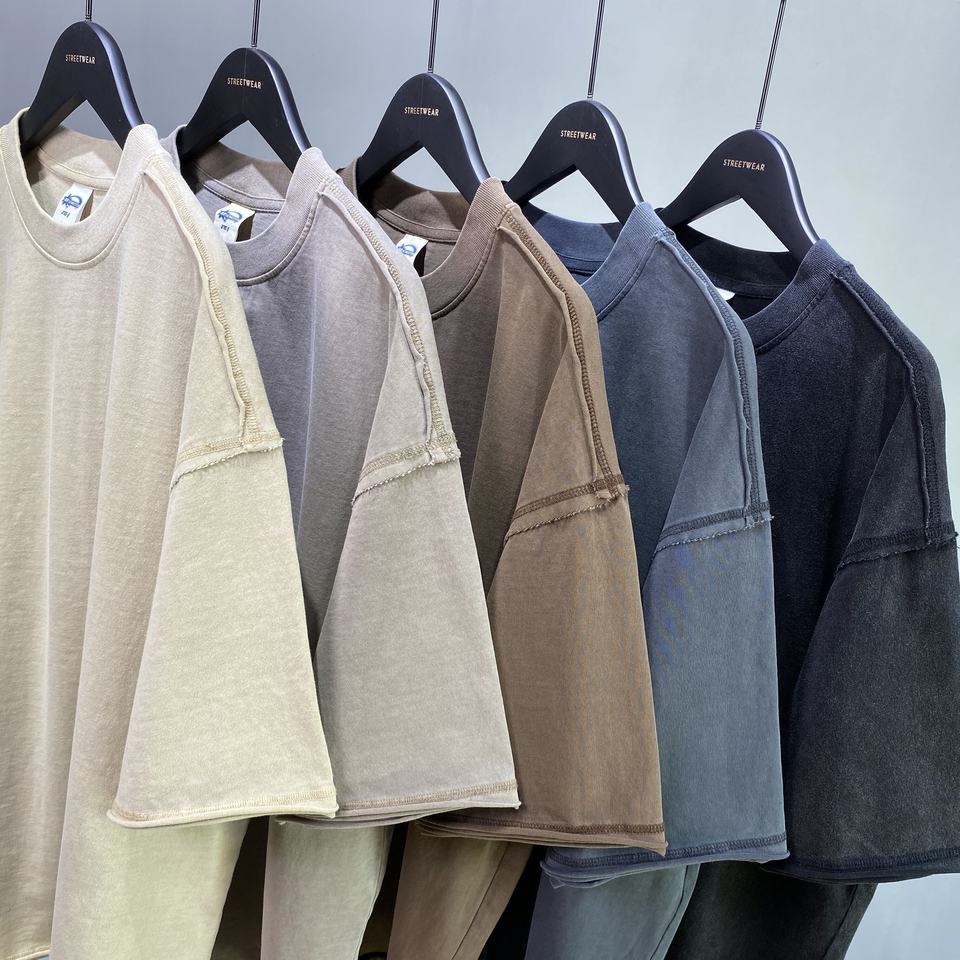 เสื้อยืดผู้ชายสีฟอกกรด275กรัมเสื้อยืดวินเทจโอเวอร์ไซซ์ผ้าฝ้าย100% ย้อนยุคหินสีดำ