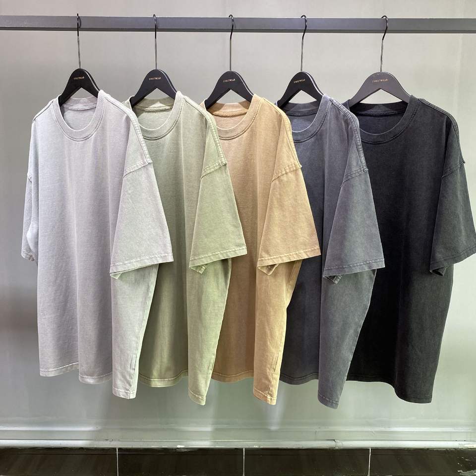 เสื้อยืดโอเวอร์ไซส์สำหรับผู้ชายผ้าฝ้าย100% แขนสั้นซักวินเทจสำหรับ275gsm โลโก้ออกแบบได้ตามต้องการ