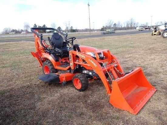 รถแทรกเตอร์ขนาดเล็ก Kubota 27 แรงม้า เครื่องยนต์ 2600 รอบต่อนาที ขับเคลื่อน 4 ล้อ รุ่น Kubota BX23S พร้อมที่ตักดินดีเซล ขุดดิน เครื่องตัดหญ้า และล้อ