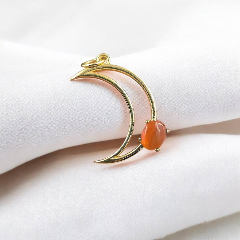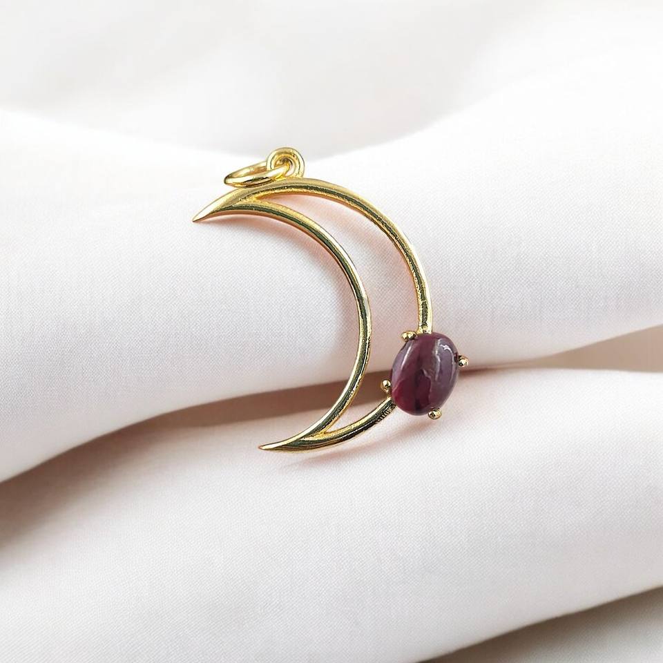 จี้พระจันทร์ครึ่งเสี้ยว27มม. จี้ทองรูปพระจันทร์เสี้ยวเสน่ห์ทำด้วยมือเครื่องประดับอัญมณีรูปวงรีชุดง่ามอัญมณีขายส่งจี้