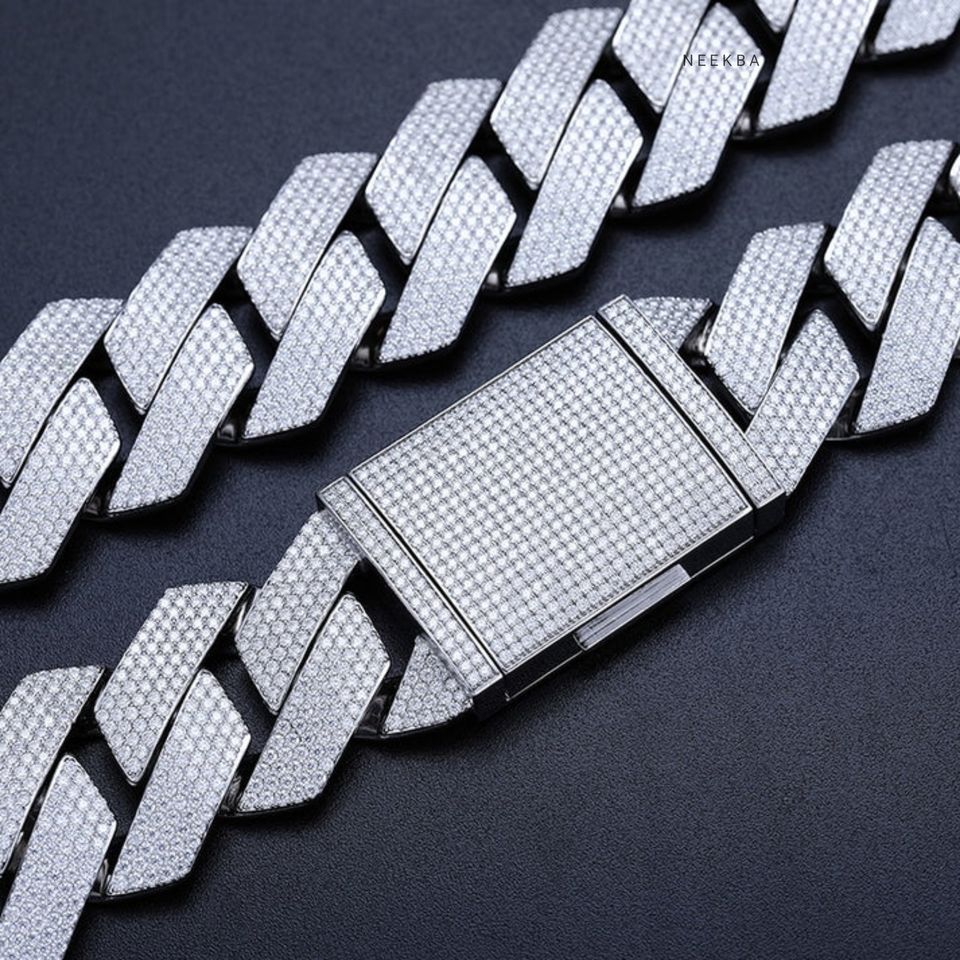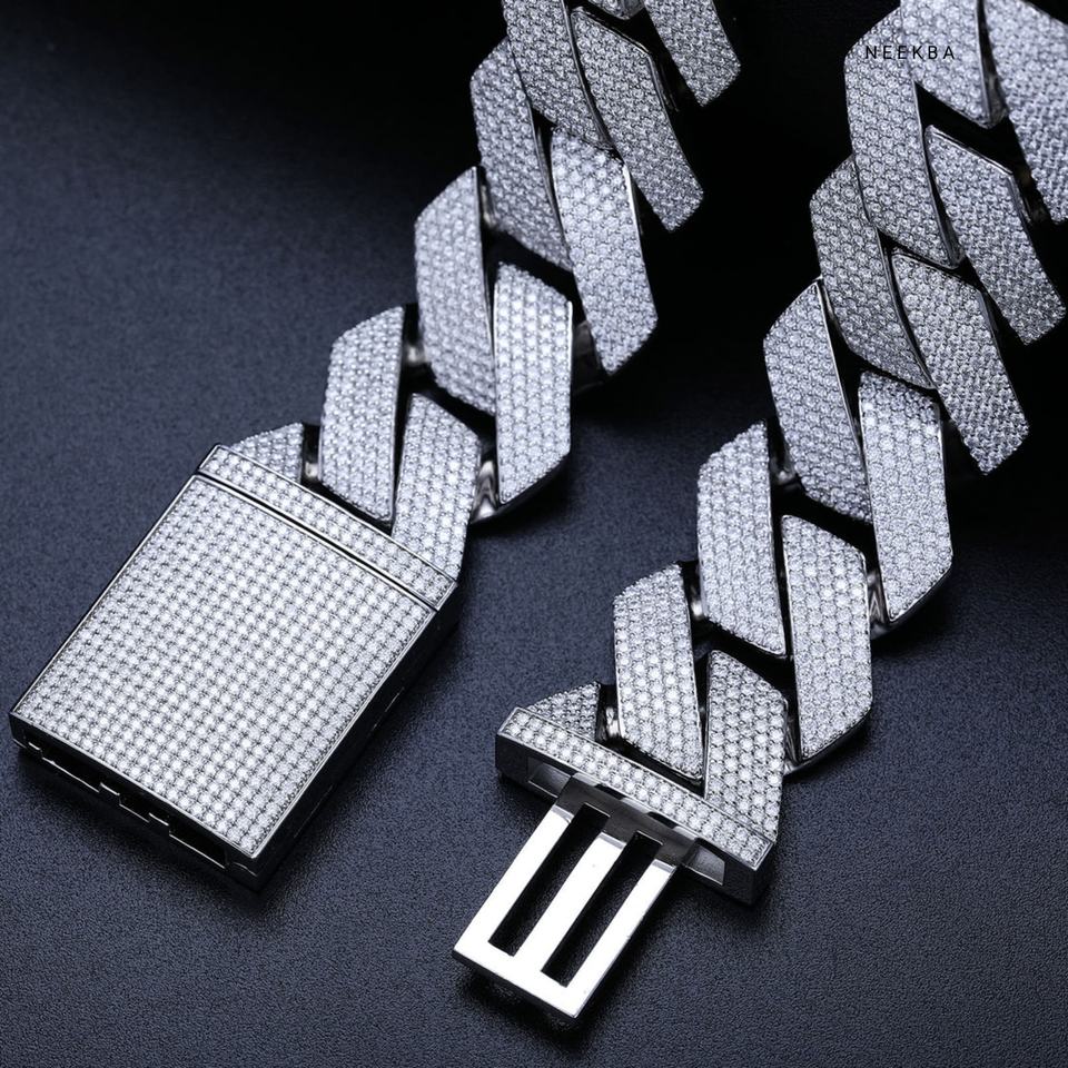 27mm S925 5-Row Moissanite Cuban Chain - Iced Out Street Style Necklace, Men's Thick Moissanite Necklace, 100% Handmade Necklace