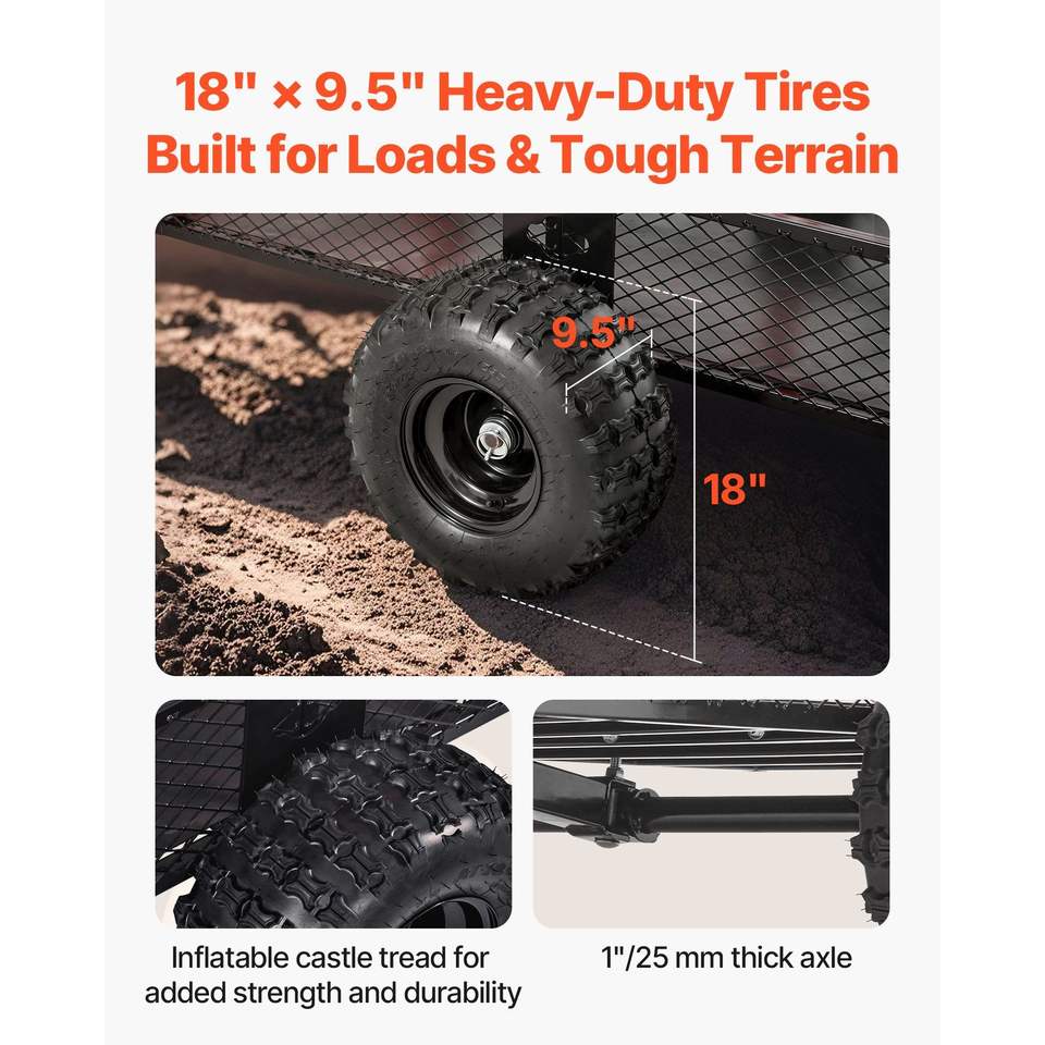 28 Cu. Ft Steel Garden Yard Trailer Cart 1800 Lbs Capacity Dump Trailer Tow Behind Design for Farm Use