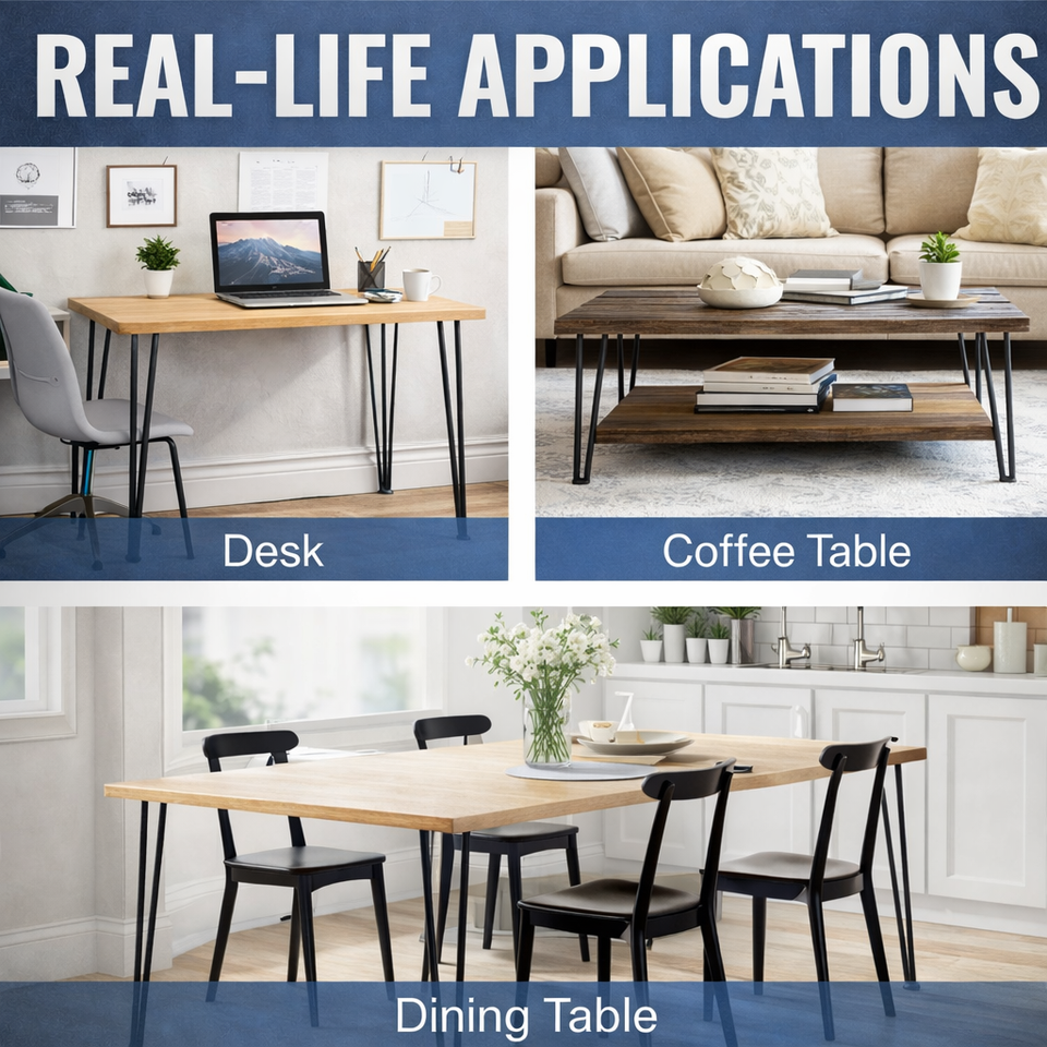 ขาโต๊ะแบบ Hairpin ขนาด 28 นิ้ว - เหล็กแข็งขนาด 1/2 นิ้ว สามเส้นรับน้ำหนักได้ 900 ปอนด์ 4 ชิ้น ขาโต๊ะสแตนเลสแบบหนาสำหรับงานหนัก ดีไซน์ทันสมัย สำหรับโต๊ะอาหาร DIY รุ่น EDPTBL013