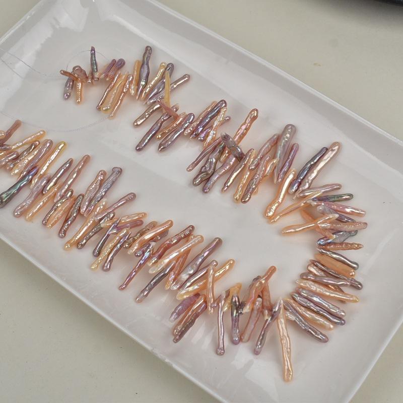 ลูกปัดไม้จิ้มฟัน 28 รู พร้อมแสงสว่างจ้า วัสดุทำมือ DIY รูปทรงกระดุม ไข่มุกน้ำจืดธรรมชาติ ทรงบาร็อค รูปทรงไม่สม่ำเสมอ