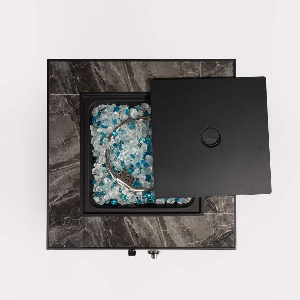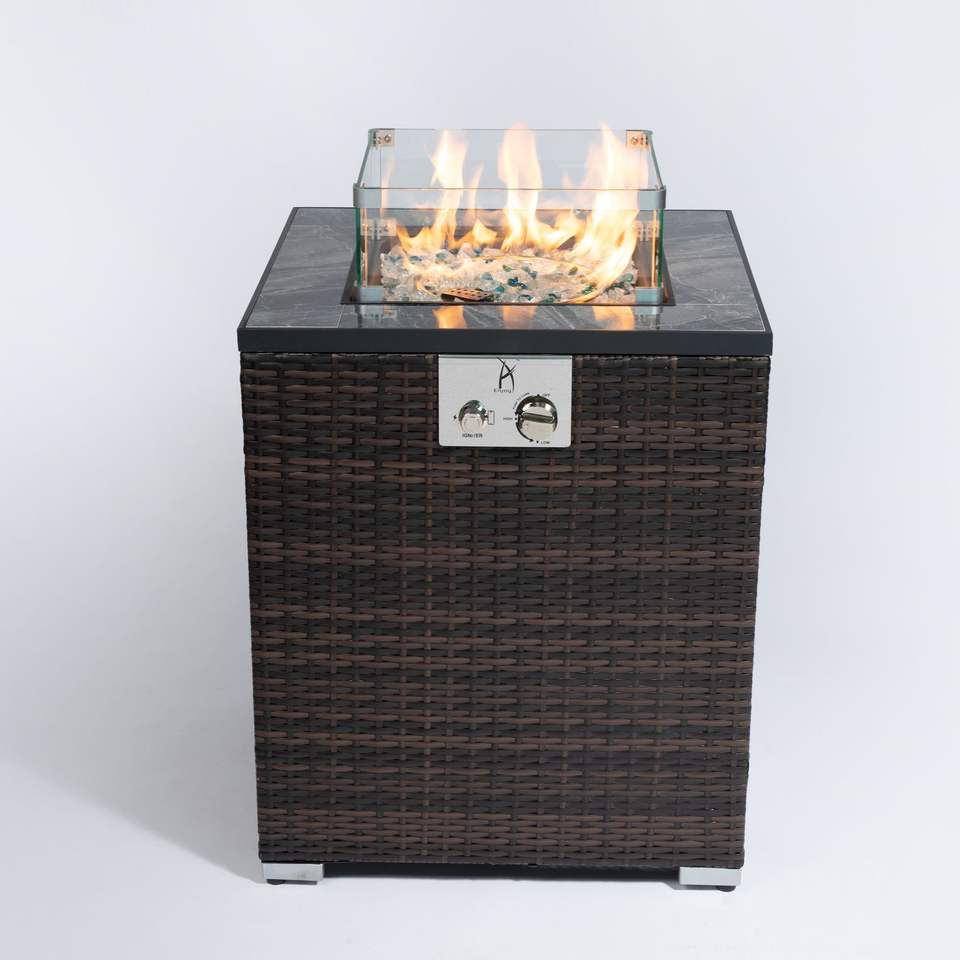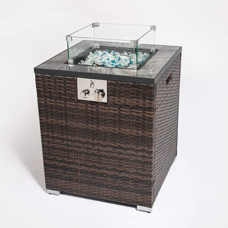 โต๊ะเตาไฟกลางแจ้งแบบเสาขนาด 28 นิ้ว ใช้แก๊สโพรเพน สำหรับตกแต่งสวน มุมสวน พร้อมเตาไฟแก๊ส