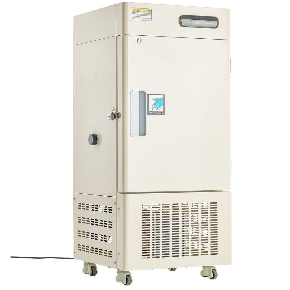 ตู้แช่แข็งอุณหภูมิต่ำพิเศษขนาด 28 ลิตร สำหรับห้องปฏิบัติการ ปรับอุณหภูมิได้ 40 ถึง 123 องศาฟาเรนไฮต์ พร้อมหน้าจอดิจิตอลและล้อเลื่อน