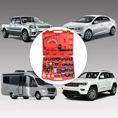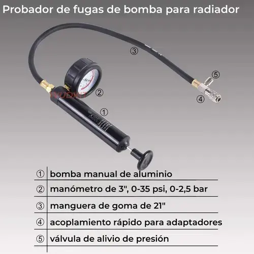 ชุดบเลด28ชิ้นรวมชุดทดสอบการรั่วไหลของหม้อน้ำพร้อมมาตรวัดความดันคู่แรงดันสูงสุด36.26 PSI สำหรับรถยนต์/รถบรรทุก