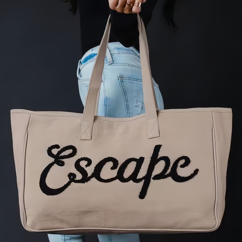 กระเป๋าถือผ้าฝ้ายสีทึบสีชมพู28นิ้วกระเป๋าช็อปปิ้งสำหรับผู้หญิงกระเป๋าโท้ทปักโลโก้ชายหาด