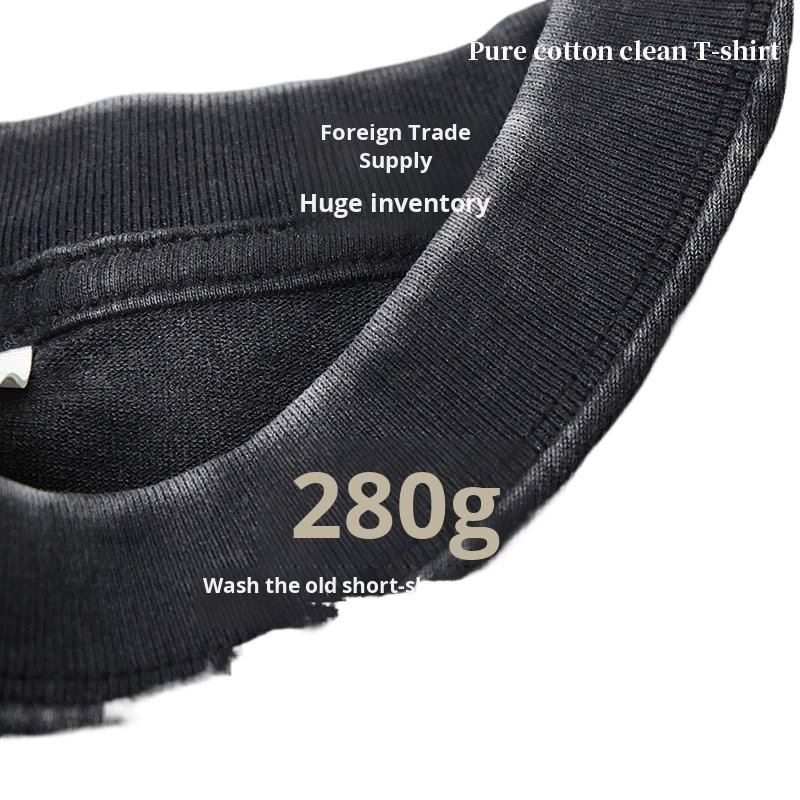 เสื้อยืดผู้ชายทรงหลวม แขนสั้น รุ่น 280G Retro Salted Wash 3D ผ้าเจอร์ซีย์ 100% ผ้าฝ้าย พิมพ์ลายดิจิตอล โลโก้ ไซส์ยุโรป