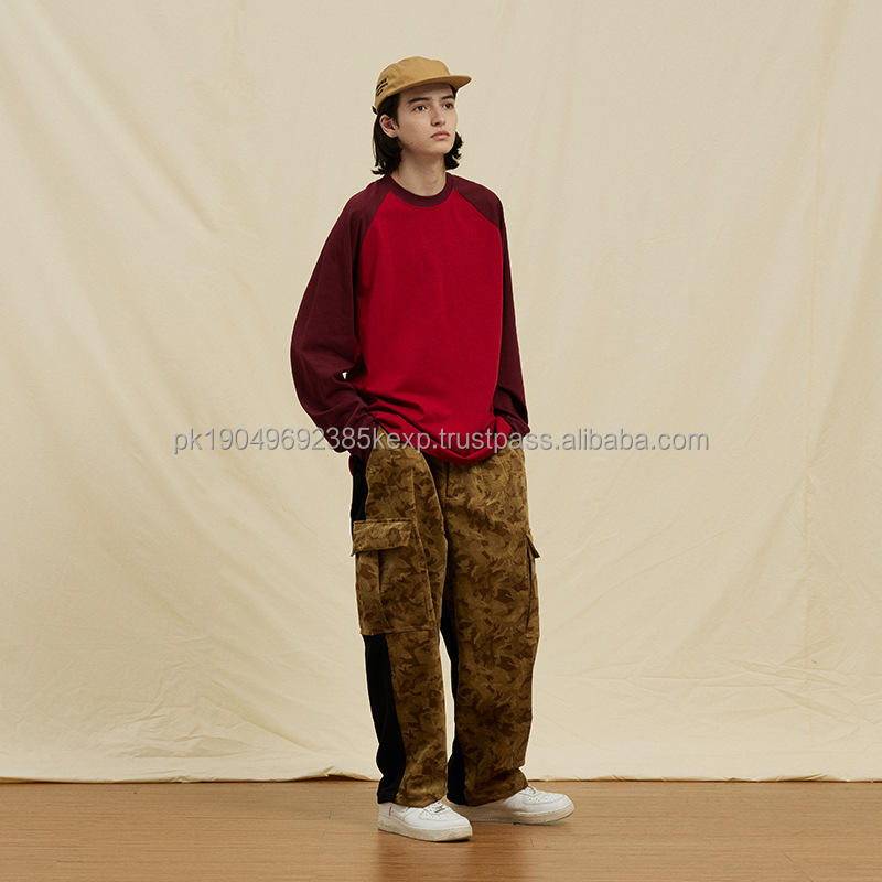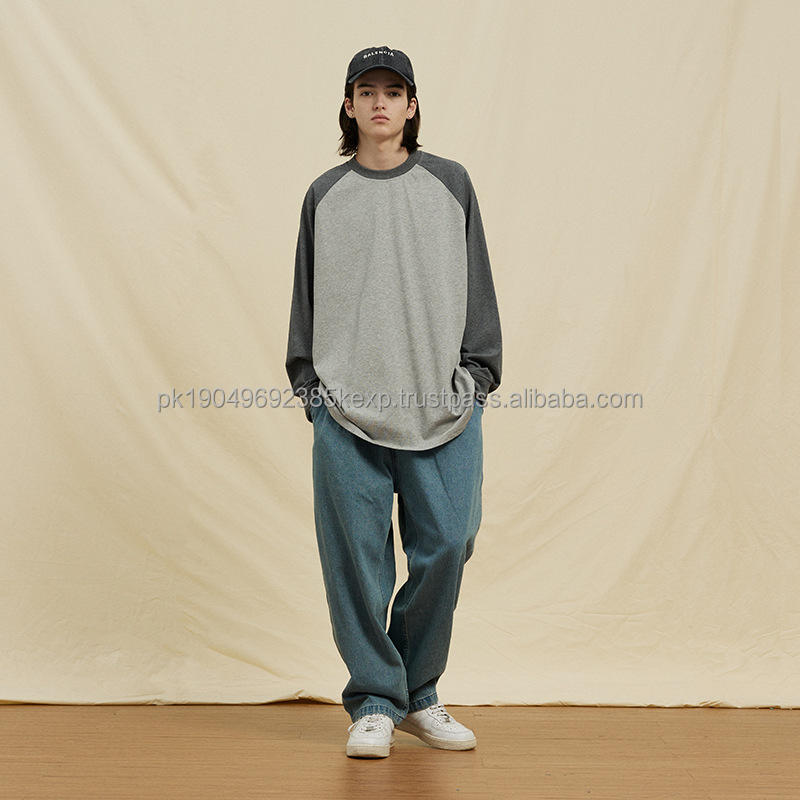 280gsm ผ้าคอตตอนคอมบ์คอกลมแขนแร็กแลนผ้าฝ้าย100% ออกแบบได้เองเสื้อยืดสำหรับผู้ชายทรงหลวม