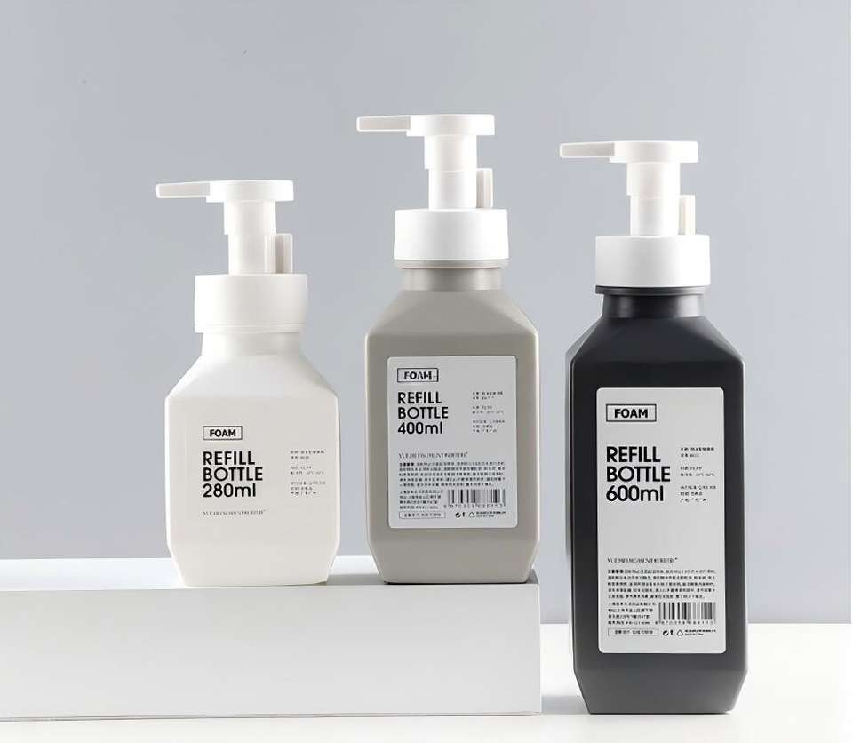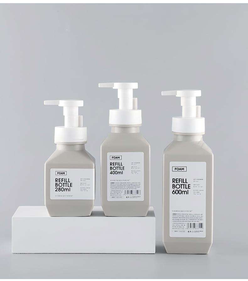 ขวดปั๊มสบู่เหลว 280 มล. 400 มล. 600 มล. ขวดปั๊มโฟมทรงเหลี่ยม ขวดโลชั่นทรงเหลี่ยม HDPE บรรจุภัณฑ์สำหรับผลิตภัณฑ์ดูแลผิว