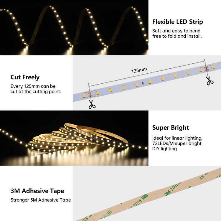 ไฟ LED แบบยืดหยุ่น 2835 24v ไฟแบ็คไลท์ SMD สำหรับโปรไฟล์อะลูมิเนียมและฝ้าเพดาน