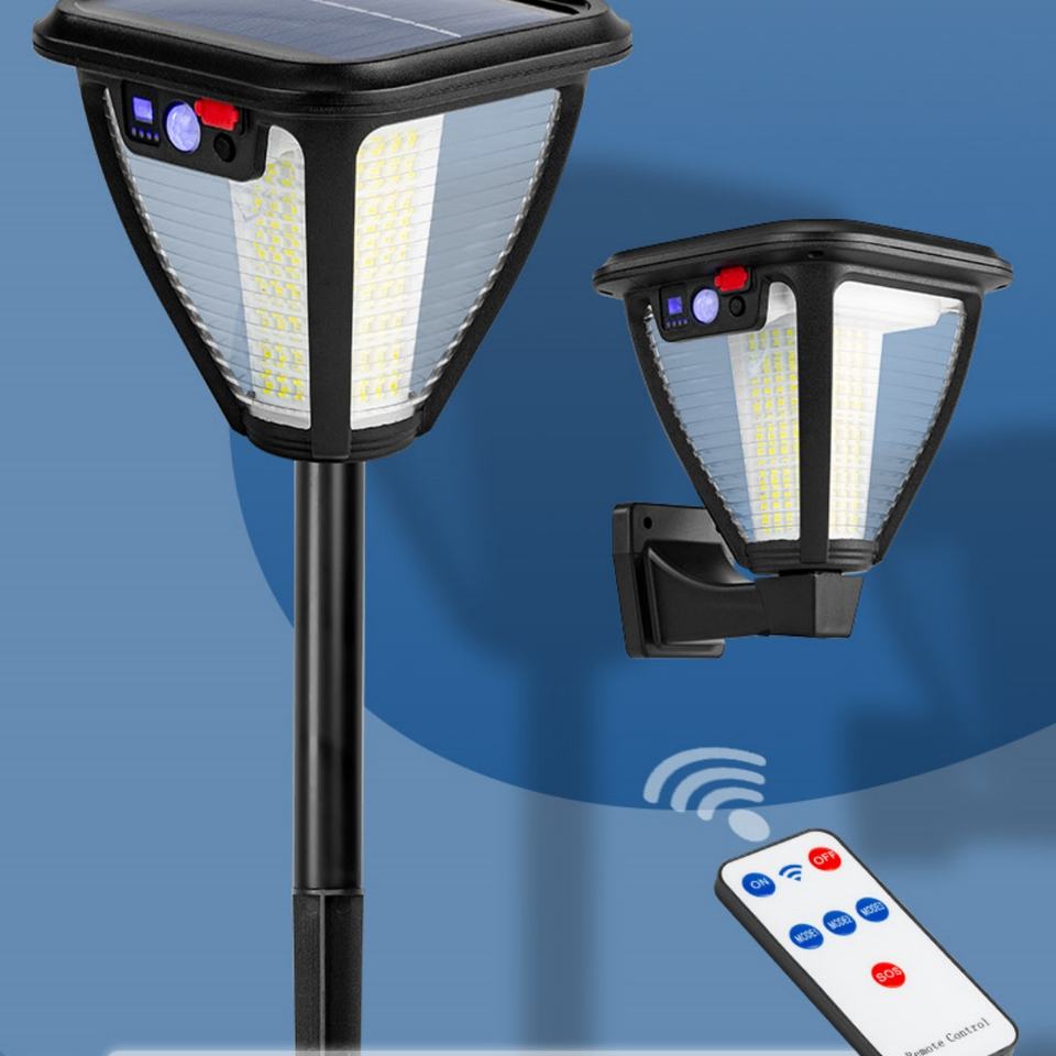 ไฟสนามหญ้าโซลาร์เซลล์แบบติดผนัง 288Led 3 โหมด ชาร์จไฟได้ด้วย Type-C พร้อมรีโมทคอนโทรล เซ็นเซอร์ตรวจจับความเคลื่อนไหว สำหรับสวนและทางเดินกลางแจ้ง