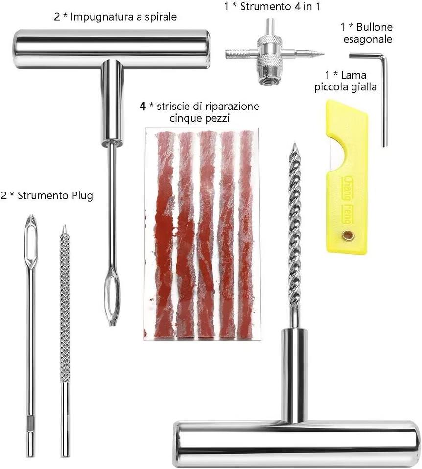 ชุดซ่อมยางรถยนต์แบบไม่มียางใน พร้อมน้ำยาซีลยางและอุปกรณ์อุดรูรั่ว