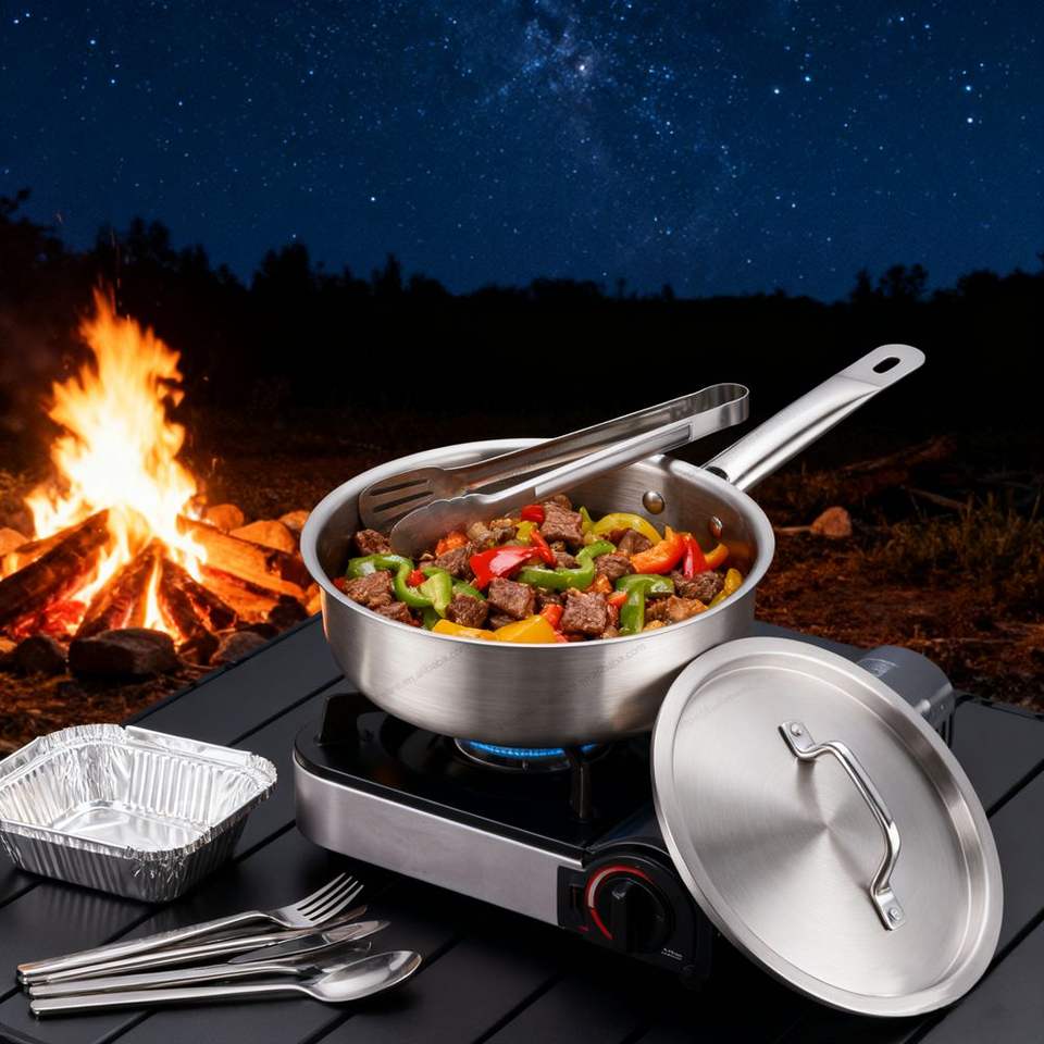 หม้อตุ๋นและกระทะสเตนเลสขนาด28ซม. หม้อซอสพร้อมฝาปิดหม้อปรุงอาหารกระทะซอส