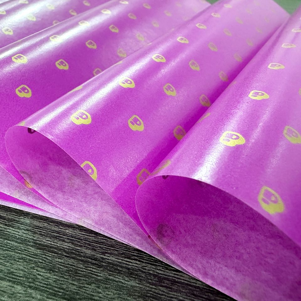 กระดาษเคลือบพิมพ์ลายหมึกสีทองและสีเขียว28กรัมขนาดกำหนดเองวัสดุบรรจุภัณฑ์สำหรับรองเท้าและเสื้อผ้าเคลือบขี้ผึ้ง