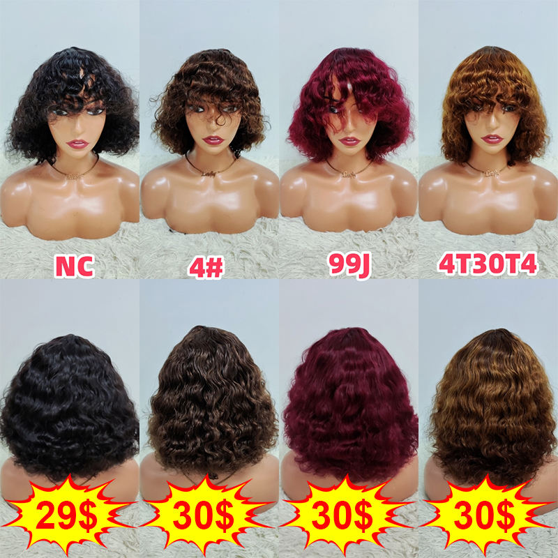 โปรโมชั่น $29 Letsfly วิกผมมนุษย์แบบม้วนลอน ราคาโรงงานขายส่ง 200% ผมเปียกและหยักศกแบบ Water Wave วิกผมบ๊อบสีสันสดใส ขนาด 12 นิ้ว