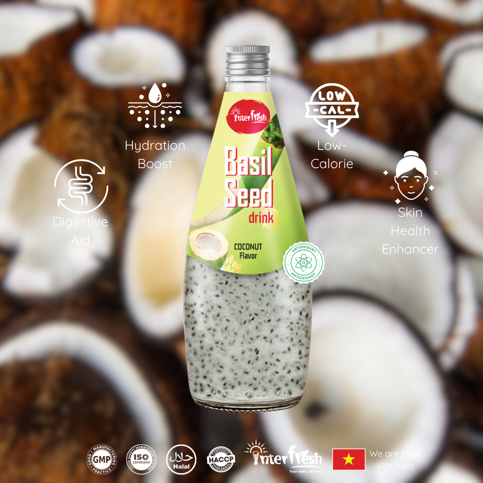 ส่วนผสม:Water, Basil seed, Sugar, Fruit Juice, Acid citric