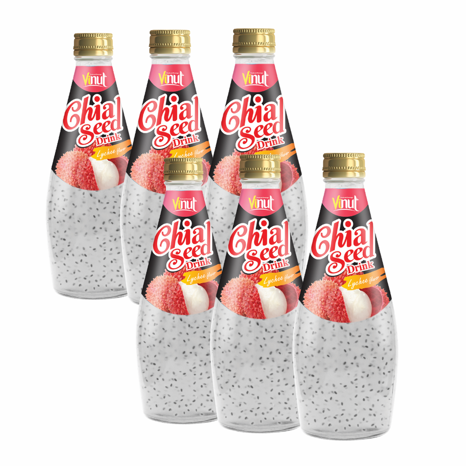เครื่องดื่มลิ้นจี่ผสมเมล็ดเจีย 290 มล. ปราศจากน้ำตาล รับผลิตแบรนด์ส่วนตัว (OEM) ตัวอย่างฟรี โรงงานเวียดนาม ราคาขายส่ง