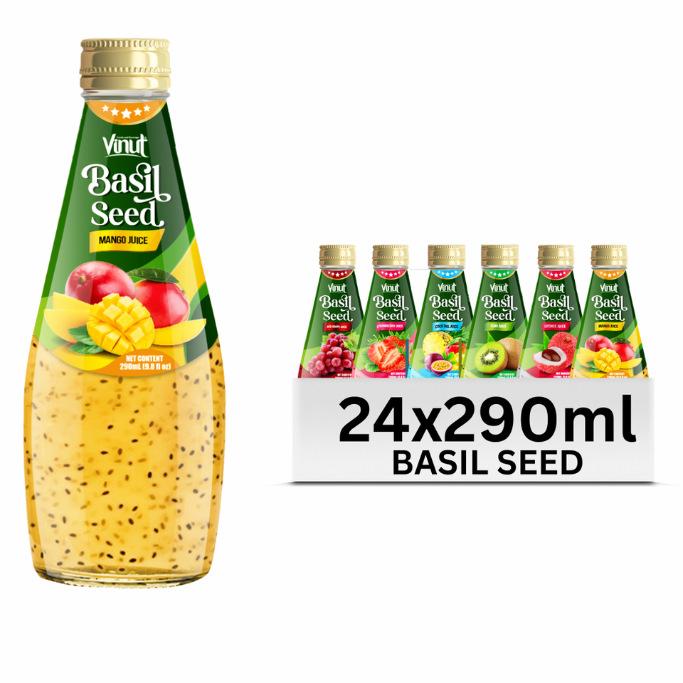 เครื่องดื่มเมล็ดโหระพามะม่วง290มล.-เวียดนามฉลากส่วนตัว oM/odm เมล็ดเจียตัวอย่างฟรี
