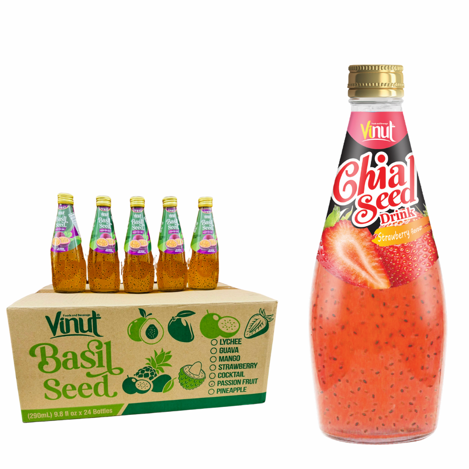 290ml Strawberry Chia Seed Drink - Vietnam, Sugar-Free, Free Sample & Private Label, OEM/ODM, Factory Direct