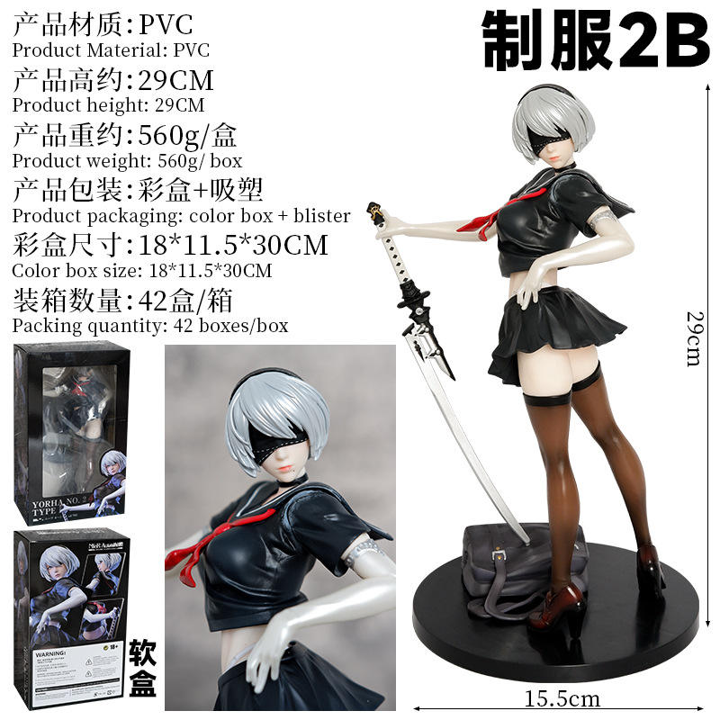 29CM NieR Automata Anime Figure HUNTER 2b YoRHa No.2 Type B Action Figure Two Head 2b YoRHa Figurine Adult Collection Model Doll