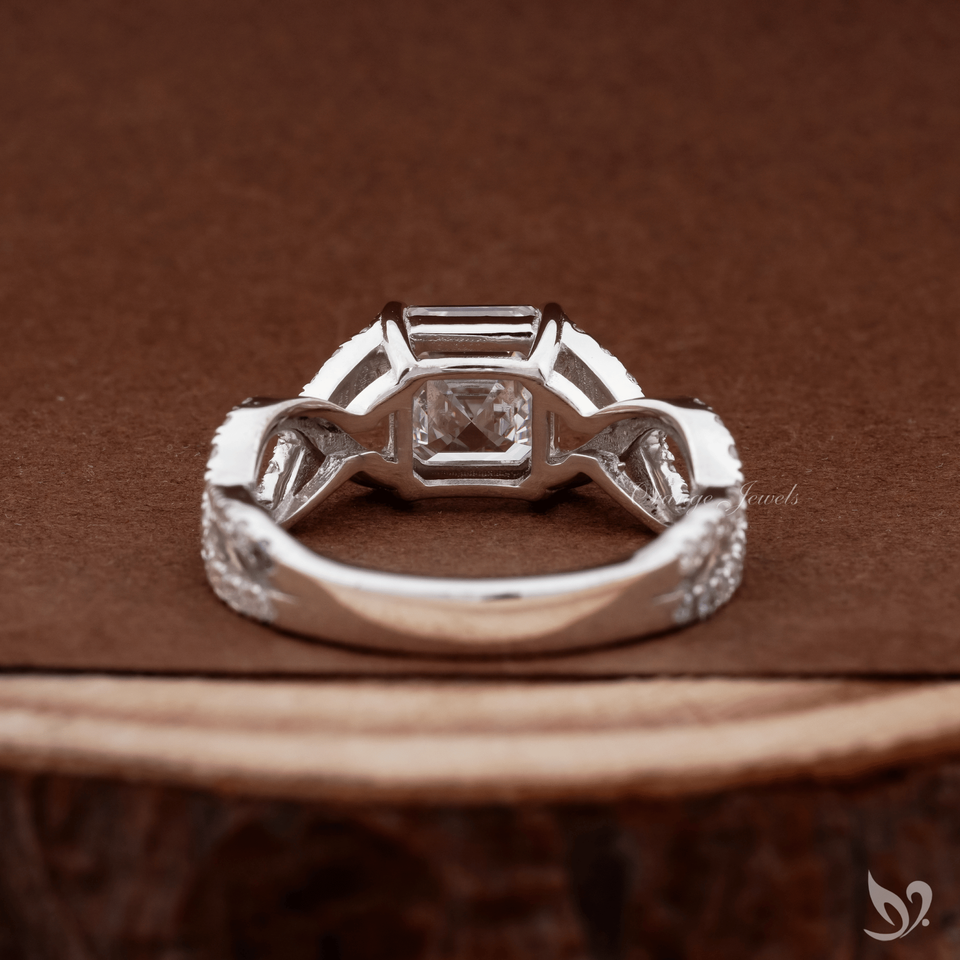 แหวนเพชรทรง Asscher 2 กะรัต ได้รับการรับรองจาก IGI เพชรเพาะเลี้ยงสำหรับงานหมั้น ตัวเรือนทองคำขาว 10K ดีไซน์วงแหวนแบบ Split Twist Pave สำหรับผู้หญิง