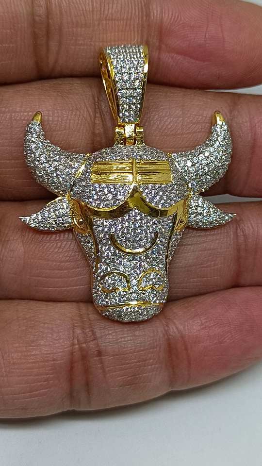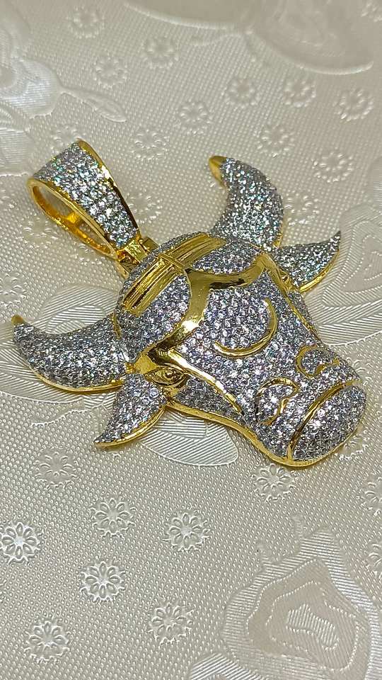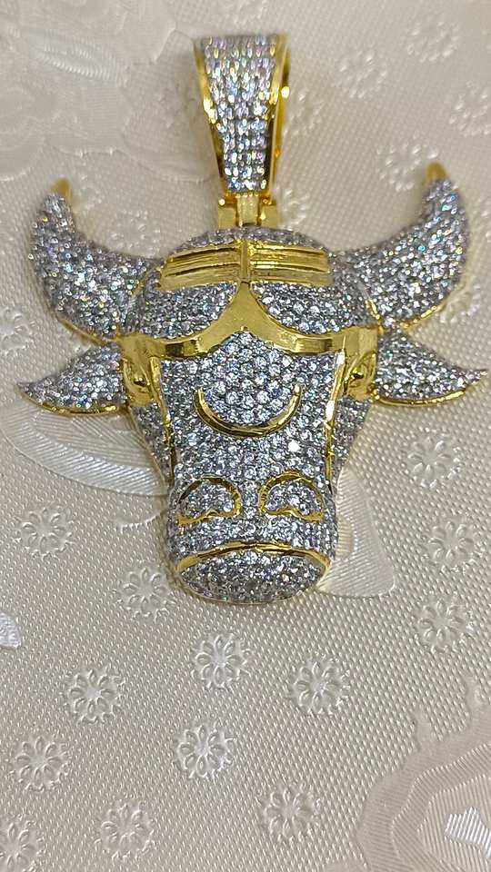 จี้เพชรมอยส์ซอไนต์2CT ราศีวัวสัตว์ผู้ชายจี้เงิน925ของขวัญชุบทองจี้เครื่องประดับชั้นดีและเสน่ห์