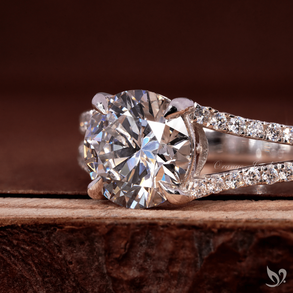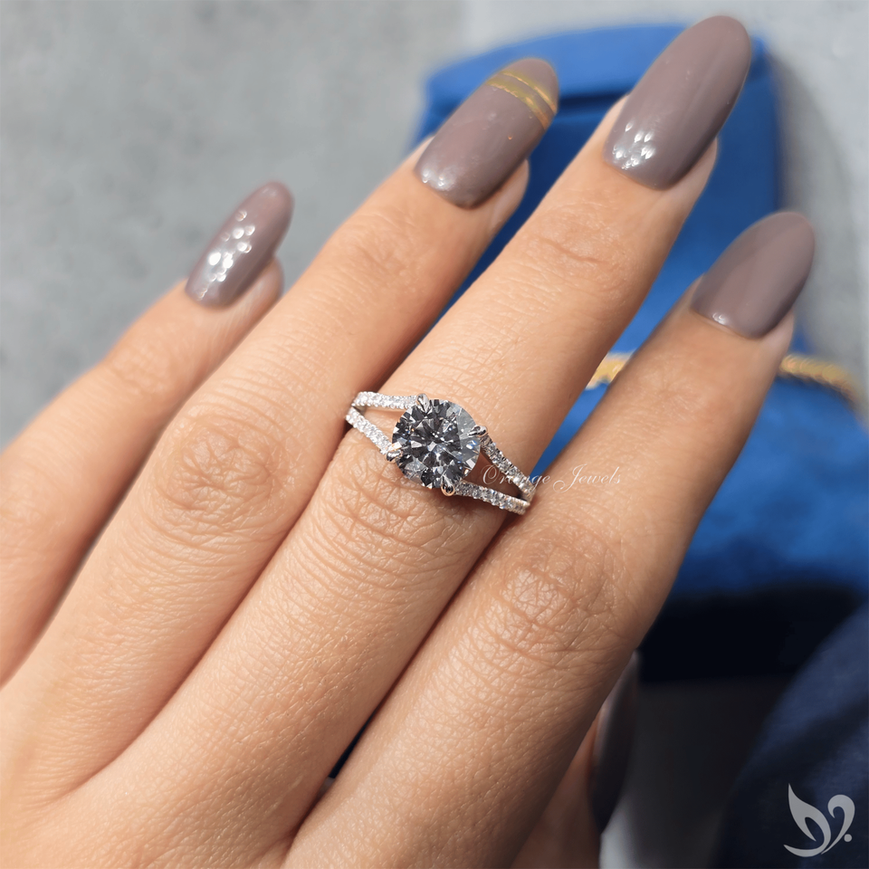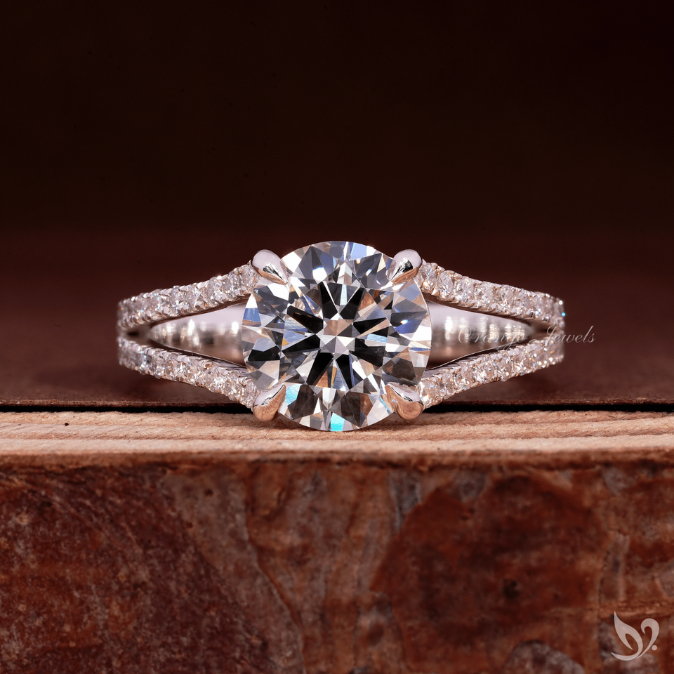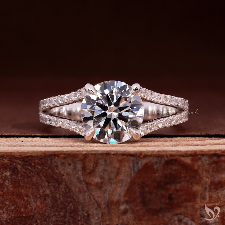 แหวนเพชรทรงกลม 2 กะรัต แบบฝังเพชรเต็มวง แหวนหมั้น ได้รับการรับรองจาก IGI ทำจากทองคำขาว 10K