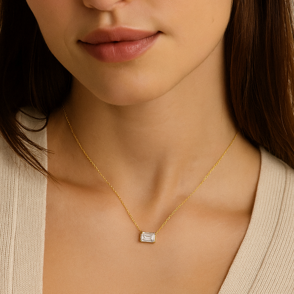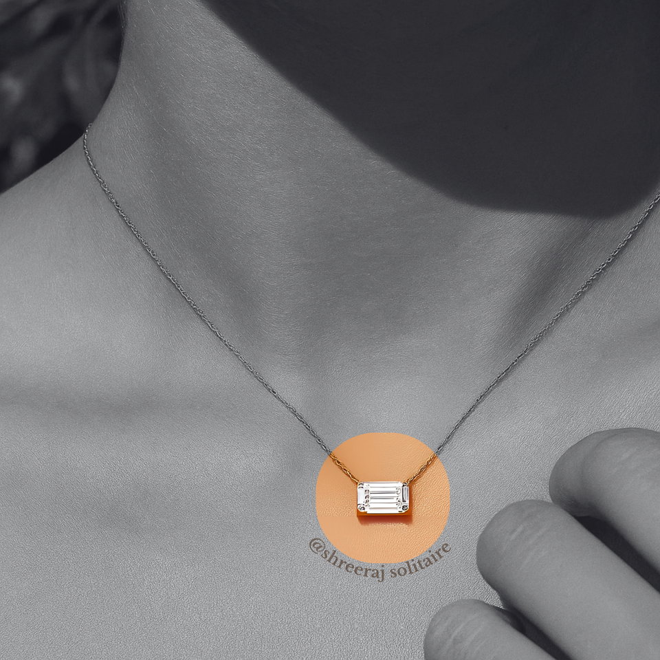 จี้เพชรทรงสี่เหลี่ยมมรกต 2 กะรัต แบบฝังหนามเตย ทำจากเพชรเลี้ยงในห้องปฏิบัติการ ตัวเรือนทองคำแท้ 18K/เงิน ได้รับการรับรองจาก IGI ระดับความสะอาด VVS/VS