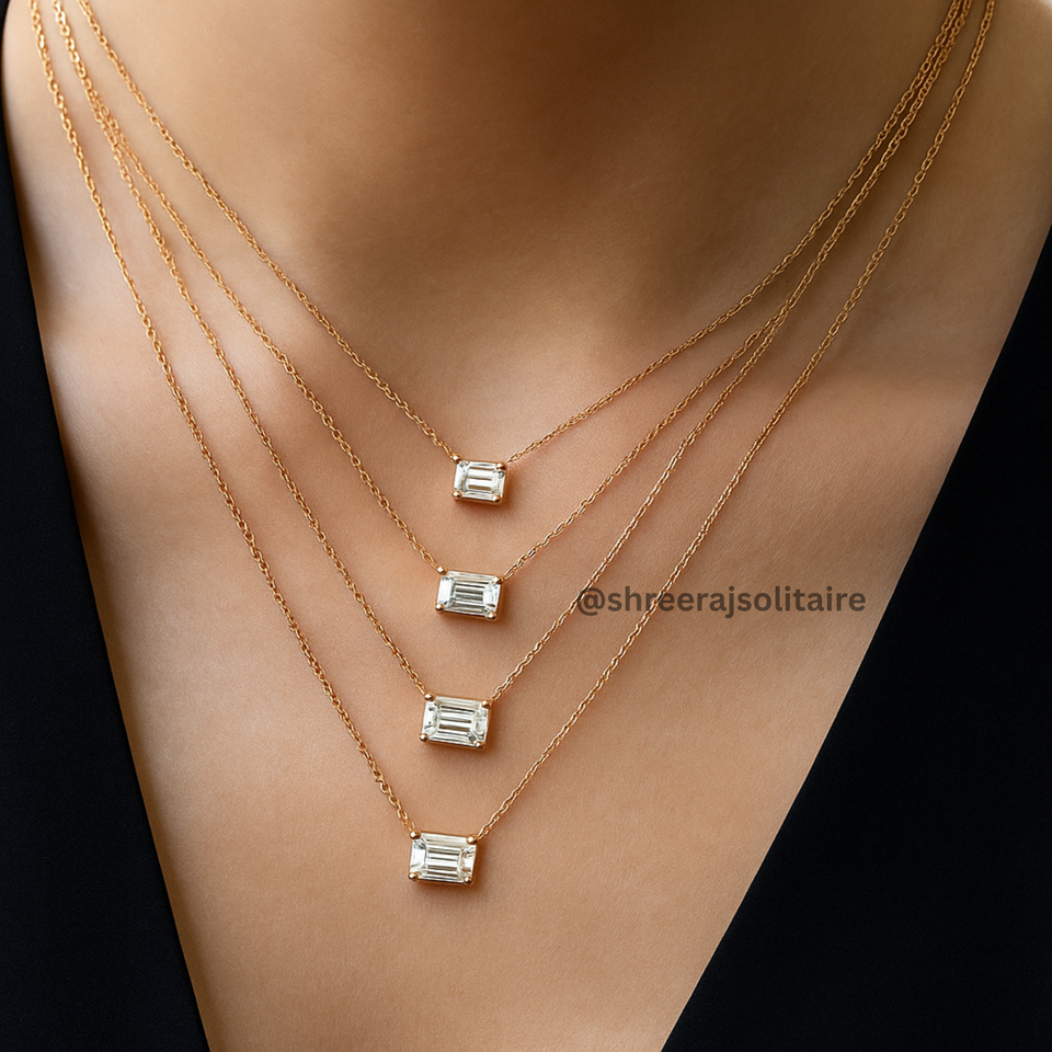 Solitaire Emerald Diamond pendant Necklace