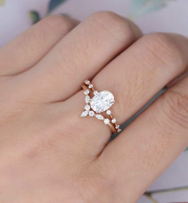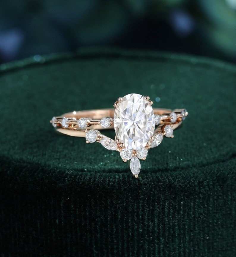 แหวนหมั้นเพชรโมอิสทรงรีสำหรับ2Ct เซ็ตโรสเตอร์ลิงเงิน925 14K โกลด์ชุบทองวินเทจเครื่องประดับตามสัญญา