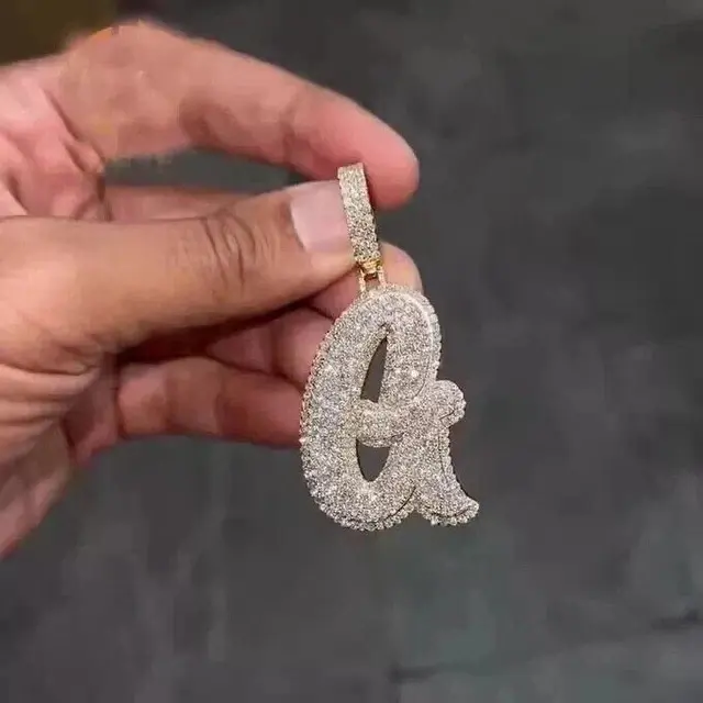 จี้เพชรโมอิสซาไนต์ทรงกลม 2 กะรัต ตัวอักษรตามสั่ง ชุบทองคำขาว 14K