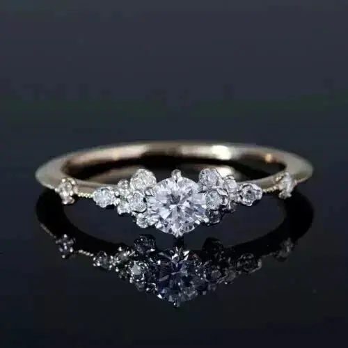 2Ct Round Cut Real Moissanite Women's Engagement Ring 14K White Gold Plated Sterling Silver Prong Setting Romantic Style