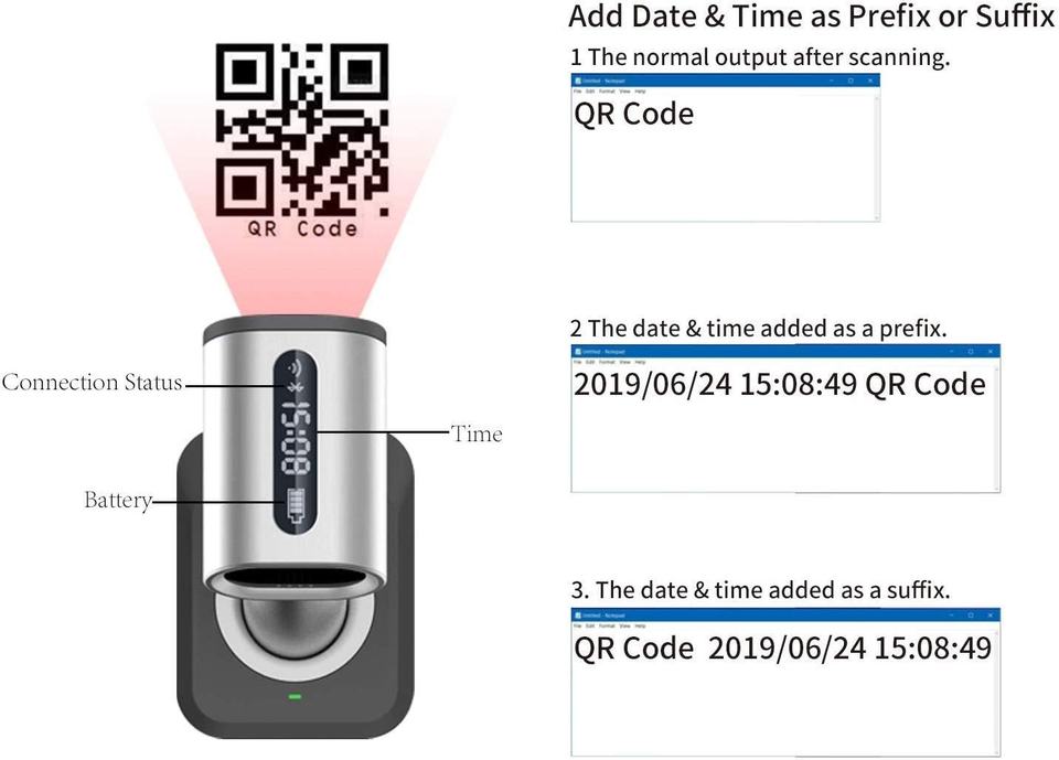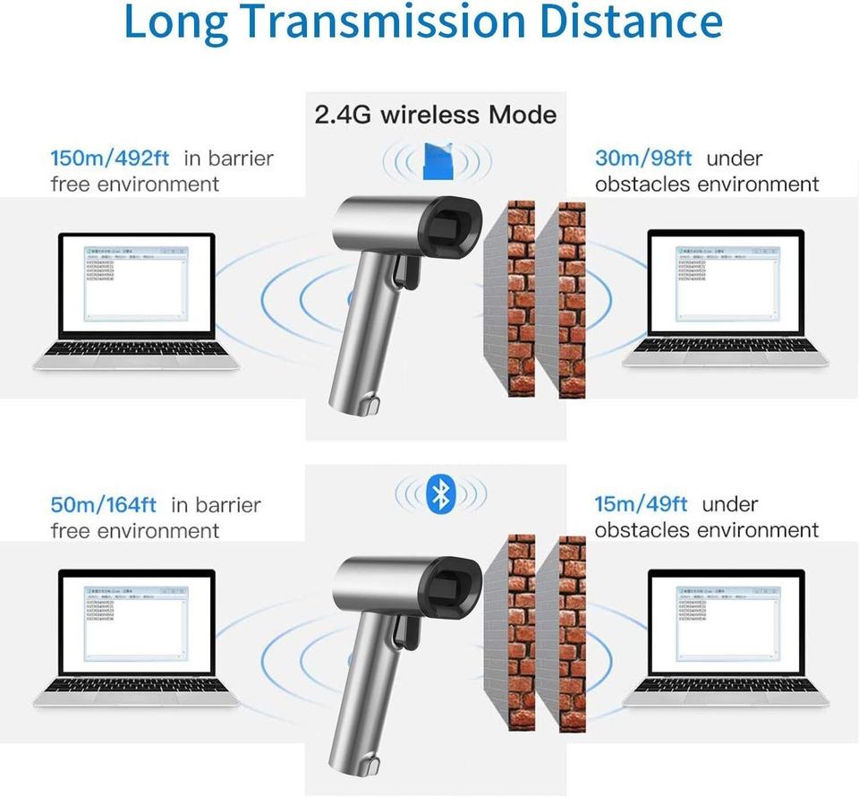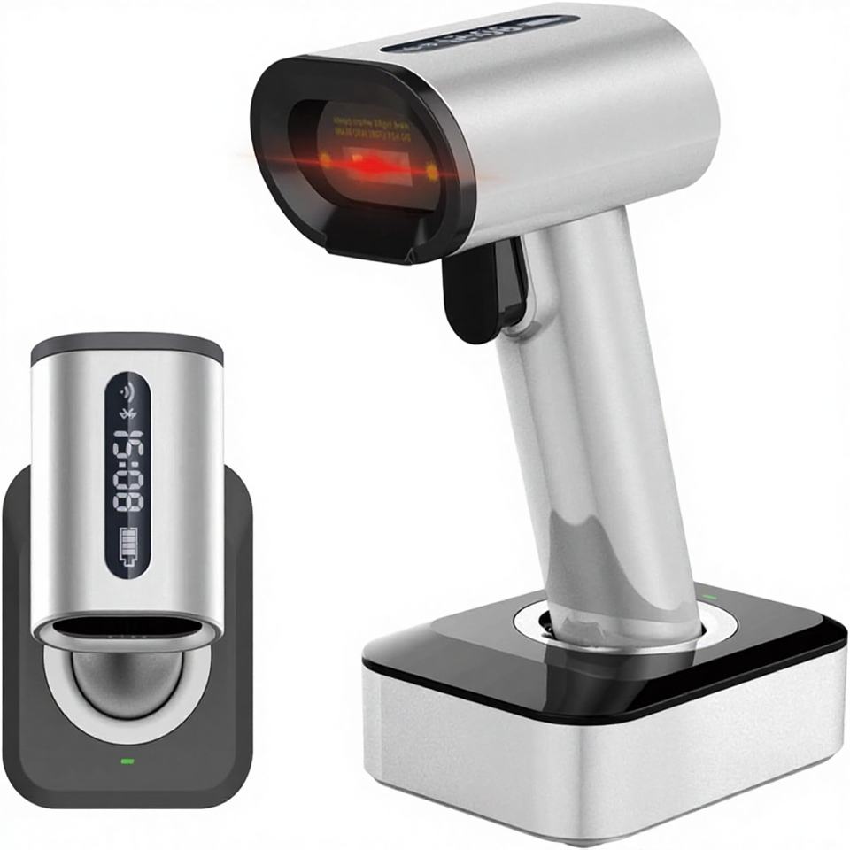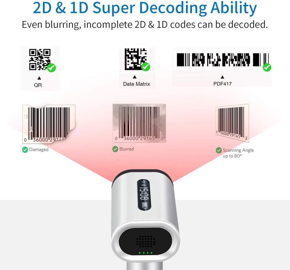 เครื่องสแกนบาร์โค้ดไร้สาย 2 มิติ สำหรับมือถือ พร้อมหน้าจอแสดงผล สแกนไดแมทริกซ์/คิวอาร์โค้ด/พีดีเอฟ417 แบบแฮนด์ฟรี พร้อมขาตั้ง ใช้งานได้ 10 ปี