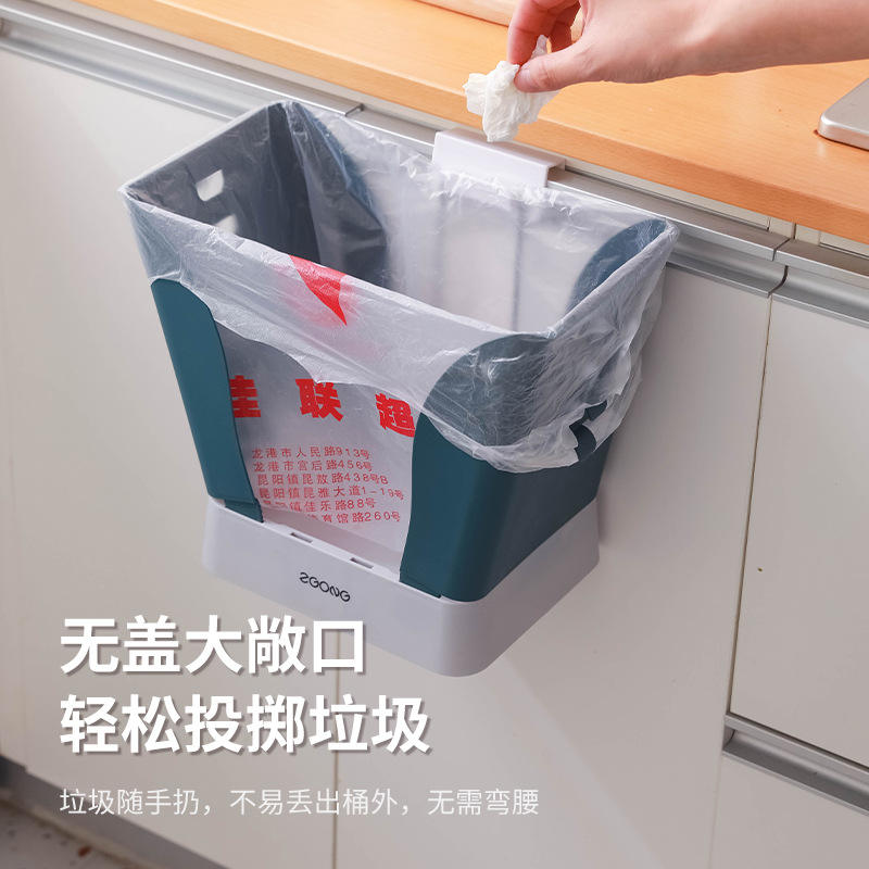 2GONG ถังขยะในครัวแบบแขวนประตูตู้ 8 ลิตร ที่ใส่ถุงขยะแบบขยายได้ ติดตั้งง่าย สีฟ้า สีเทา สีขาว
