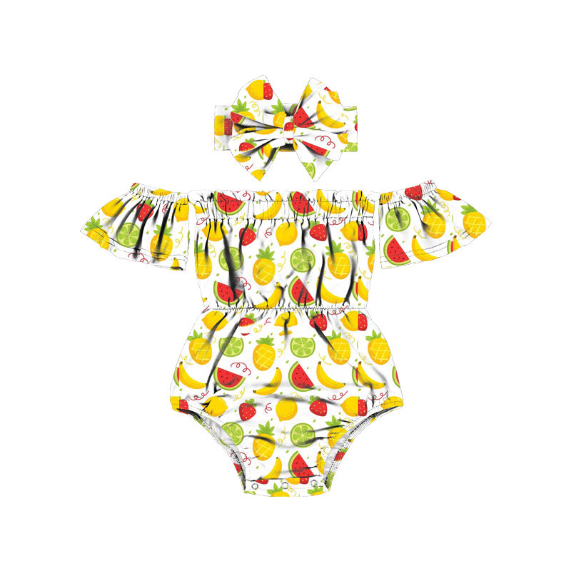 ชุดจั๊มสูทเด็กทารกแรกเกิดหญิง รุ่น 2LLY-136 สำหรับฤดูร้อน แบบไม่มีแขน ไหล่เปิด ลายดอกไม้ แต่งระบาย