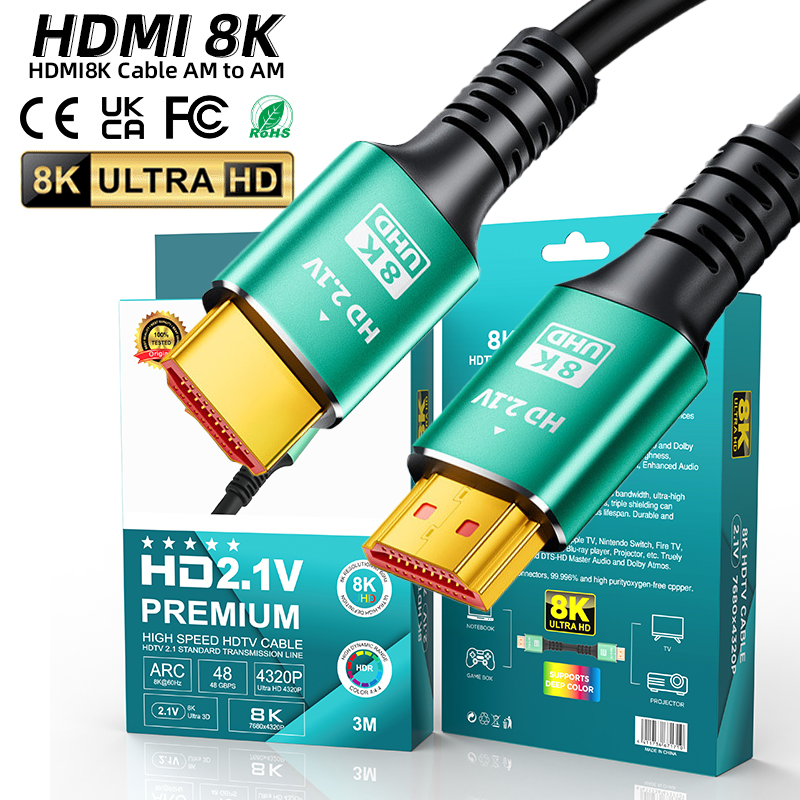 2M 8K สำหรับ2.1ตัวผู้-ตัวผู้สายความเร็วสูง48Gbps 8K 60Hz 4K 120Hz แจ็กเก็ตมีสายถักรองรับ3D สำหรับคอมพิวเตอร์และเครื่องเล่นดีวีดี