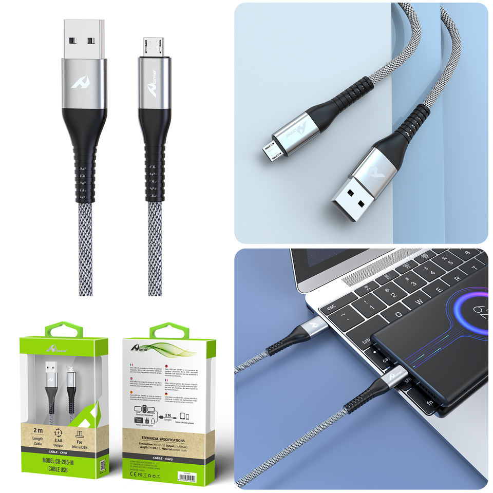 สายชาร์จเร็วไมโคร2เมตรแจ็กเก็ตไนล่อน CB-285-M 3A ตัวนำทองแดงบริสุทธิ์หุ้มเปียสำหรับโทรศัพท์มือถือ
