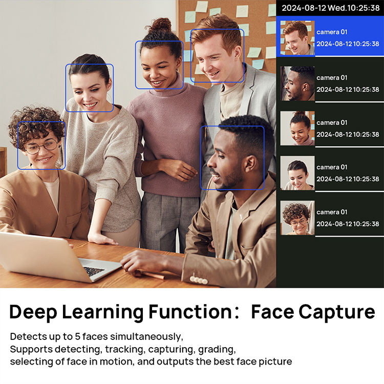 มนุษย์การติดตามการเคลื่อนไหว, Face Detection, ในตอนกลางคืน, ป่าเถื่อนหลักฐาน, การตรวจจับการเคลื่อนไหว, อุณหภูมิวัด, เสียง, กันน้ำ / ฝนและแดด, การนับคน, 2-Way Audio, การจดจำใบหน้าคุณสมบัติพิเศษ