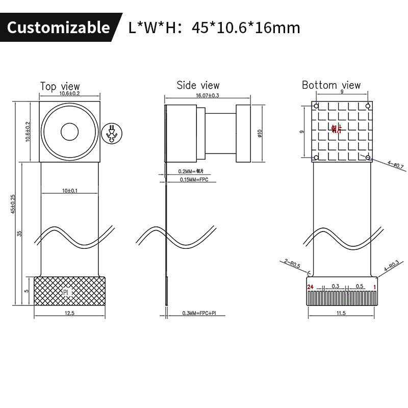 โมดูลกล้องมุมกว้างโฟกัสคงที่ลักษณะ