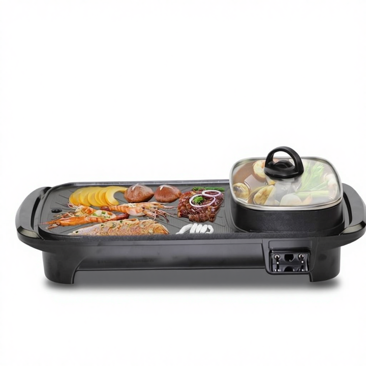 กระทะย่างไฟฟ้าอเนกประสงค์ขนาดใหญ่ 2P 1200W ผลิตจากโลหะผสม ไม่ติดกระทะ ใช้สำหรับทำฮอทพอท อบอาหาร ใช้ได้ทั้งในบ้านและนอกบ้าน พร้อมระบบควบคุมอุณหภูมิ