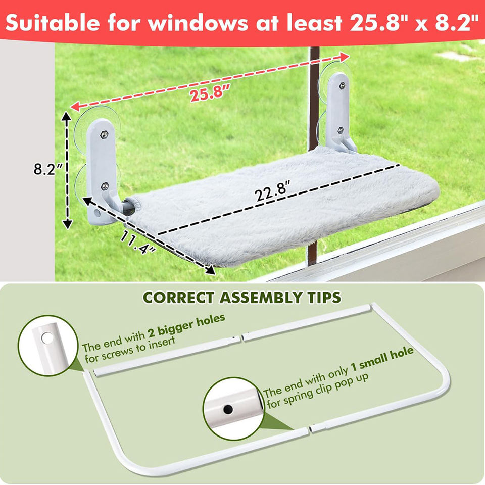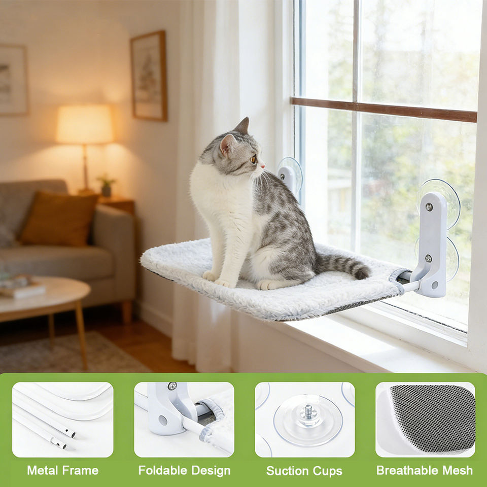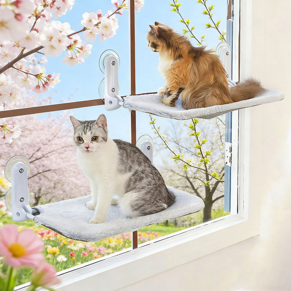 ที่นอนแมวแบบแขวนหน้าต่าง 2 ชิ้น แบบไร้สาย พับได้ พร้อมถ้วยดูดสุญญากาศที่แข็งแรง โครงโลหะ
