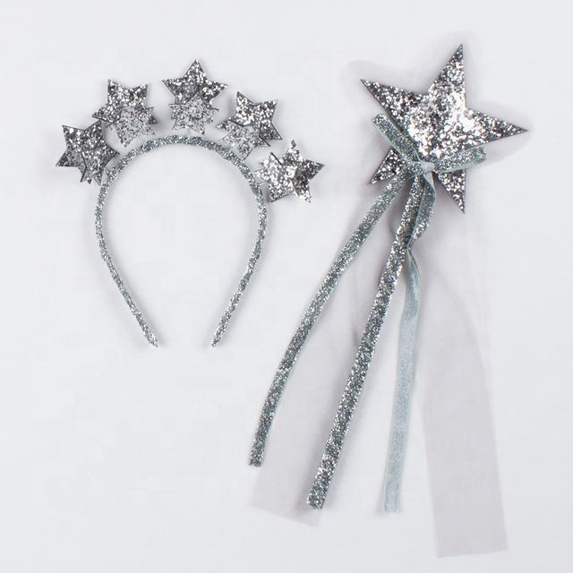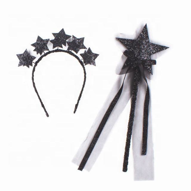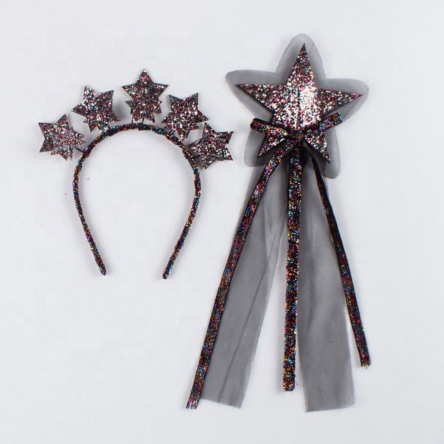 2PCS Princess Girl Halloween Party Crown Headband Star Fairy Wand Glitter Charms Hair Hoop Birthday Headpiece Hot Selling