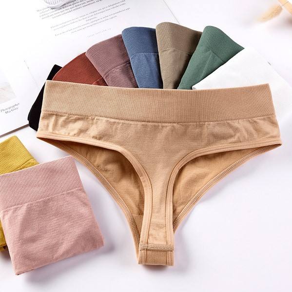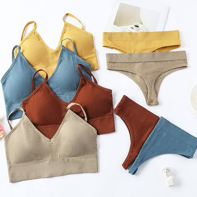 ชุดชั้นในเซ็กซี่ 2 ชิ้น บราไร้โครง บราเล็ตต์ กางเกงในไร้ตะเข็บแบบ Thong พร้อมโลโก้ที่เอว