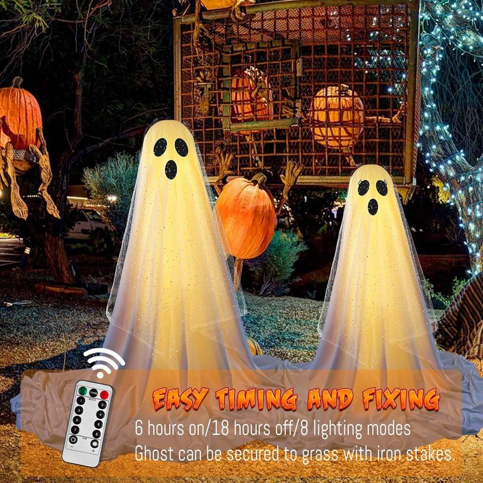 ไฟประดับฮาโลวีน 2 แพ็ค รูปผีสุดหลอน พร้อมรีโมทคอนโทรล สำหรับตกแต่งภายในและภายนอกอาคาร เหมาะสำหรับงานปาร์ตี้และตกแต่งวันฮาโลวีน
