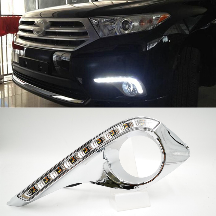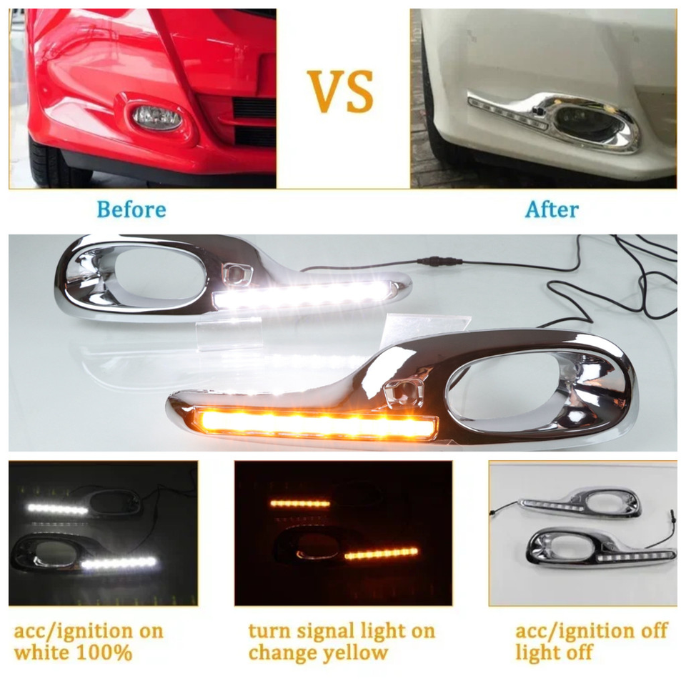 2 ชิ้นกันชนหน้าโครเมียมสีเหลืองสีขาว LED DRL ไฟวิ่งกลางวันสำหรับฮอนด้า ฟิต แจ๊ส 2011 2012 2013